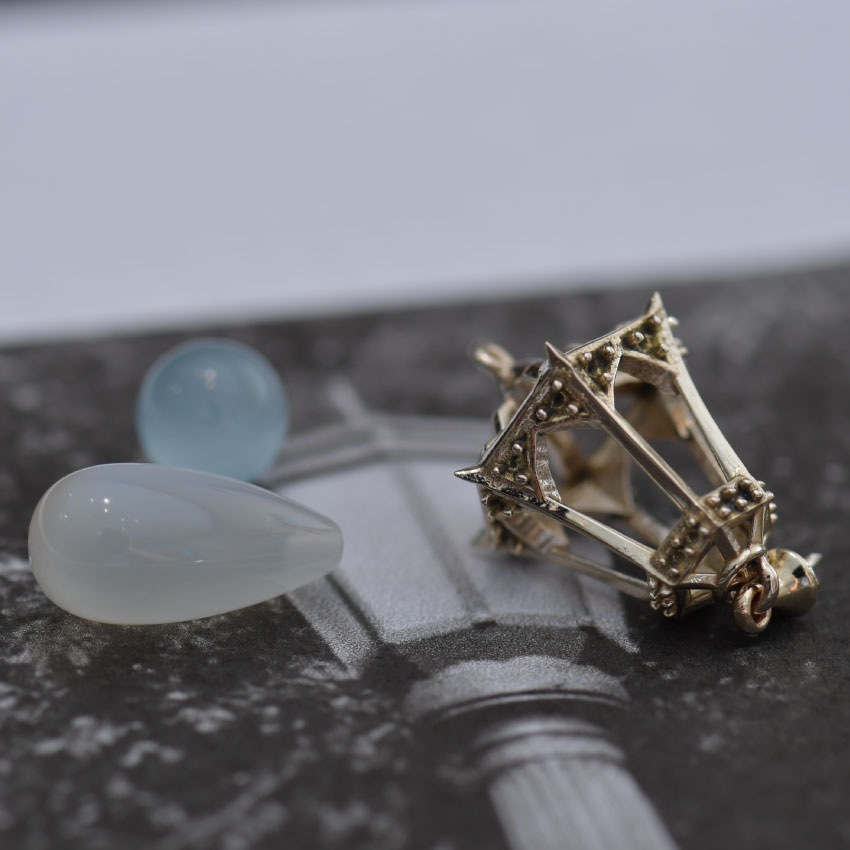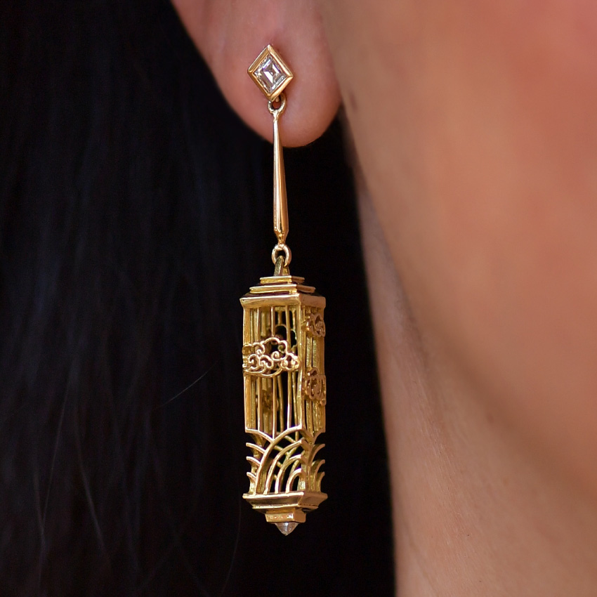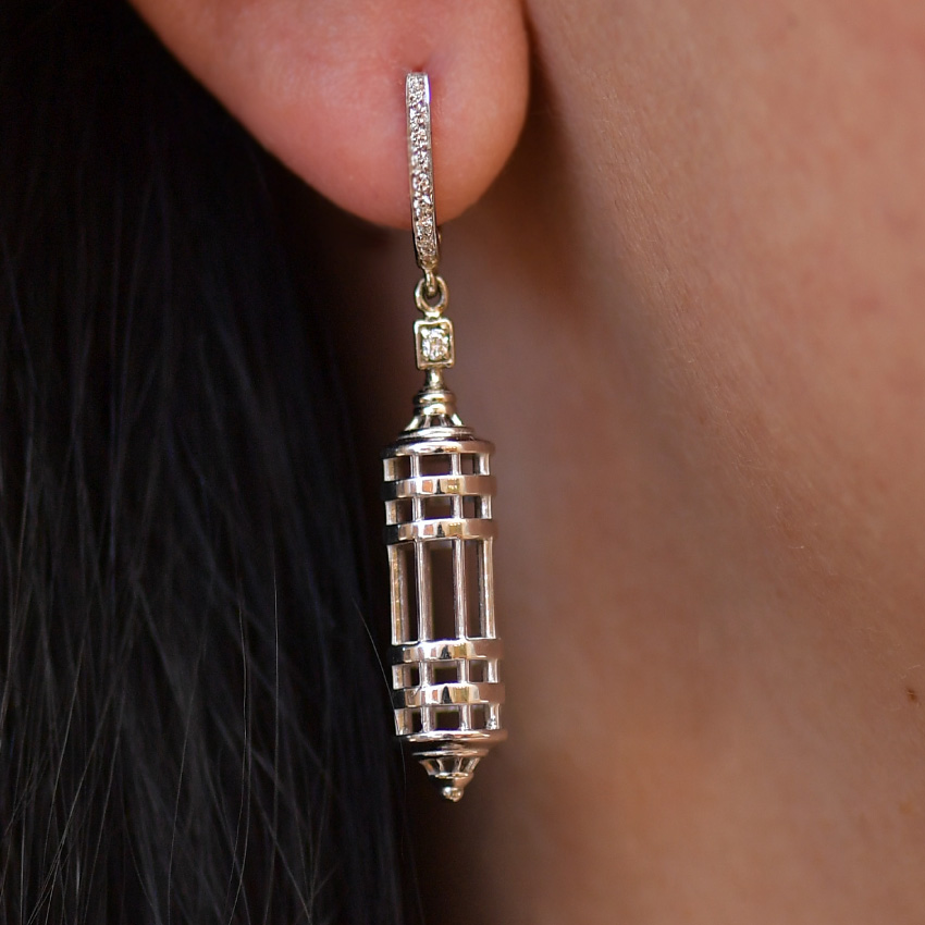 This inspired and worldly collection of jewelry is called “Cities & Lights”. These miniature works embody the greatness of human construction and technology from their respective grandiose origins. Each creation encompasses the spirit of each building with incredible attention to the tiniest details. The designs are about form and scale and the precise, mathematical spatial relationships of positive and negative space with additions of diamonds and gemstones that interact with the light just as city lights interact with the night sky.