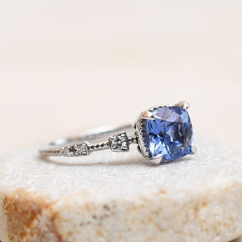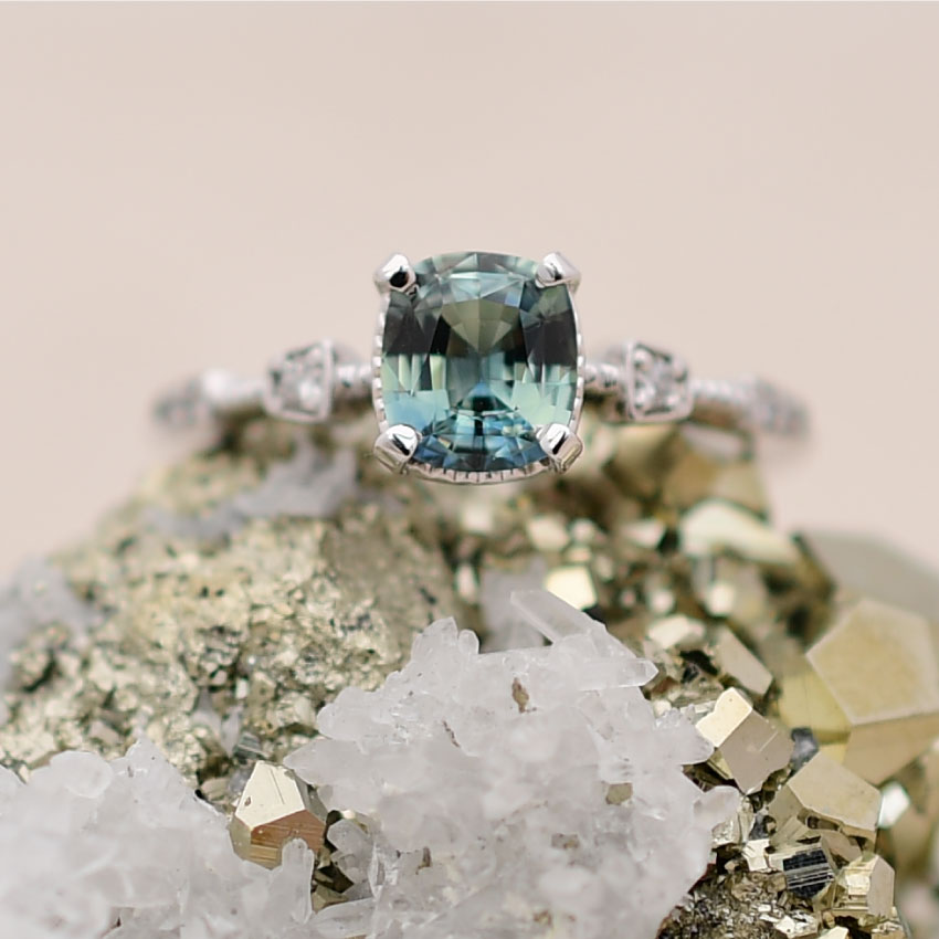 Alternative Engagement rings are a strong new category in the Chicago Engagement ring market. Alternative and mean many things and they are all variations on the traditional interpretation of the classic style. Alternative gemstones, especially sapphire are in demand. Many young couples, in particular, prefer depleted colored, or pastel colored sapphire as an alternative engagement ring gemstone.