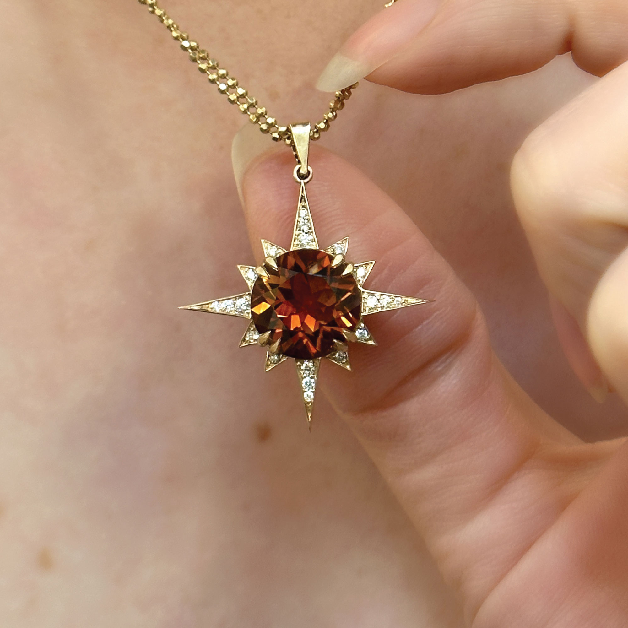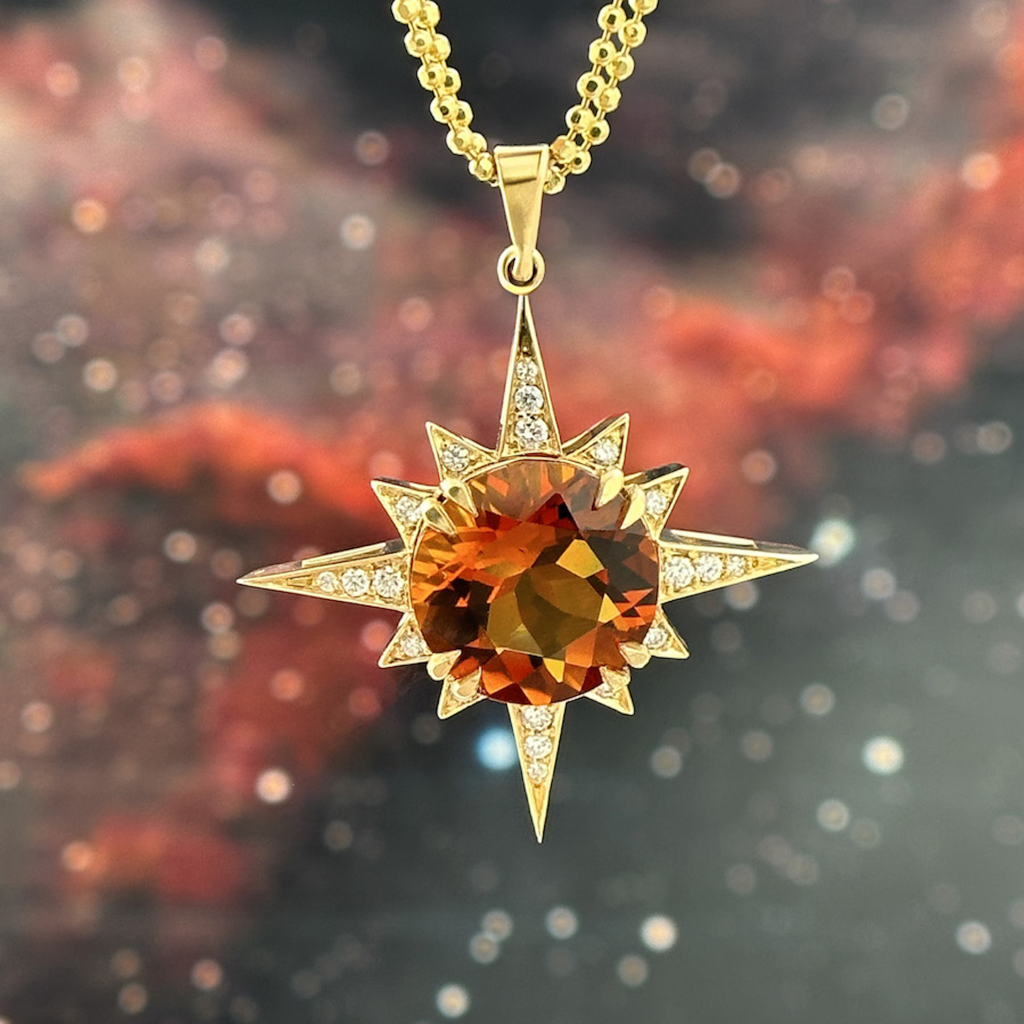 Madeira Citrine and Rhodolite Garnet Gemstones are featured in these “One of a kind” Stars.