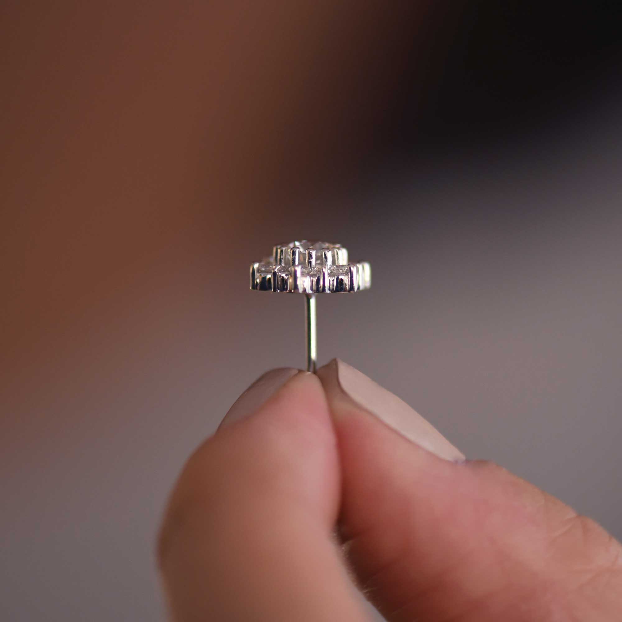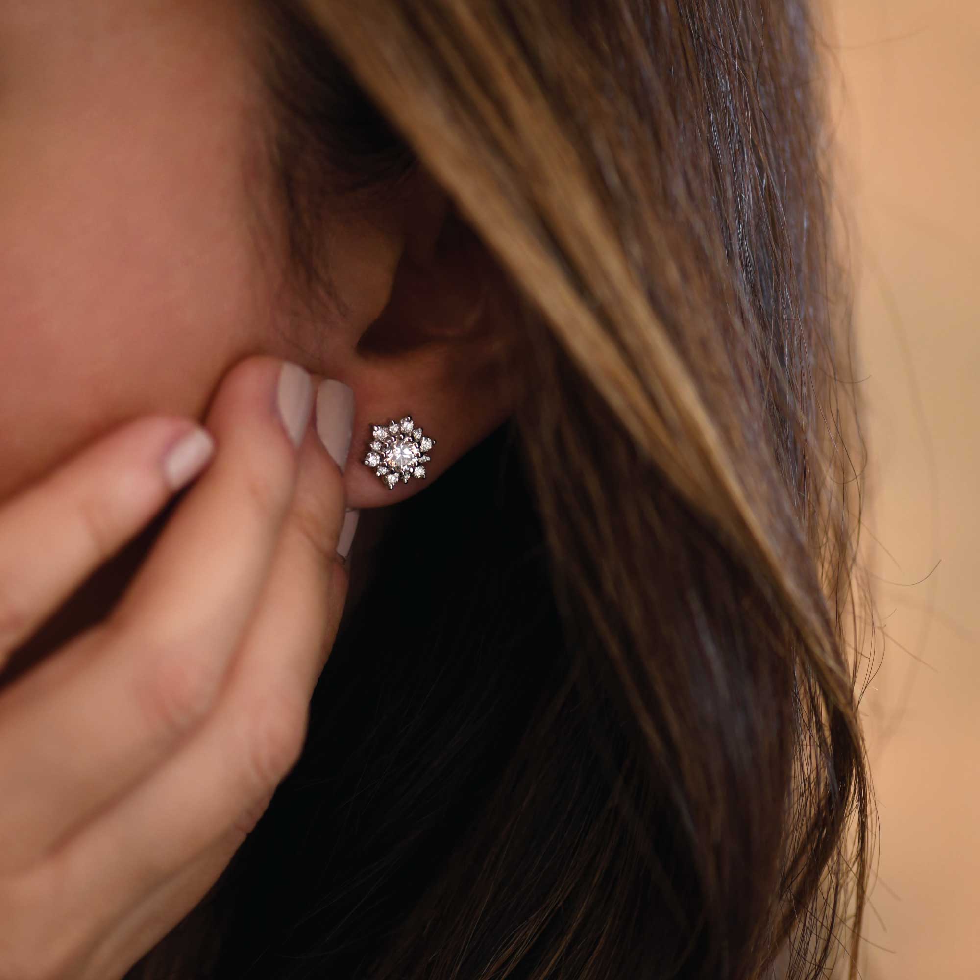 Some of the earrings and necklaces in our collection are pure and elegant in their simplicity. Our snowball series uses diamonds in clusters, close together to create a play of light much like compacted snow. It’s elegant and expertly designed to maximize this effect, each diamond hand set to fit perfectly into the overall pattern.