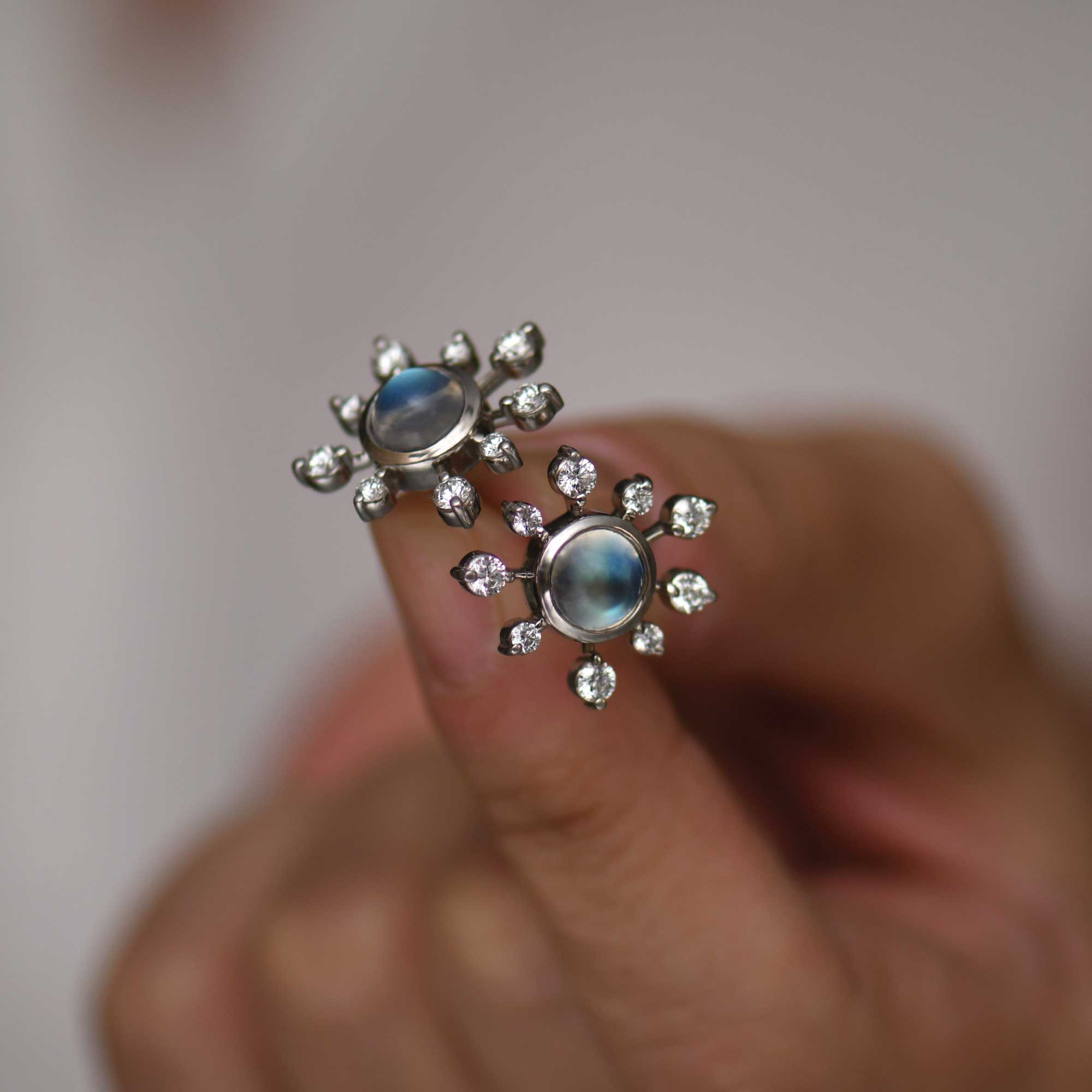 - Northern Lights Snowflake Moonstone Diamond Earrings